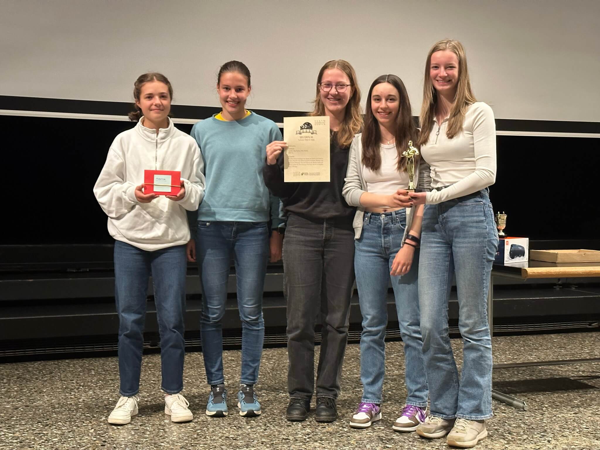 Am Wettbewerb «In Kino Veritas 2023» haben gleich zwei Filmteams der KKN einen Viktor sowie Büchergutscheine gewonnen. Aus der 2a der Film «Arachne» von Caroline, Chloé, Aiko, Seraina und Gemma, aus der 2b «Philemon & Baucis» von Alice, Julia, Elodie, Chloe, Amélie und Nora.