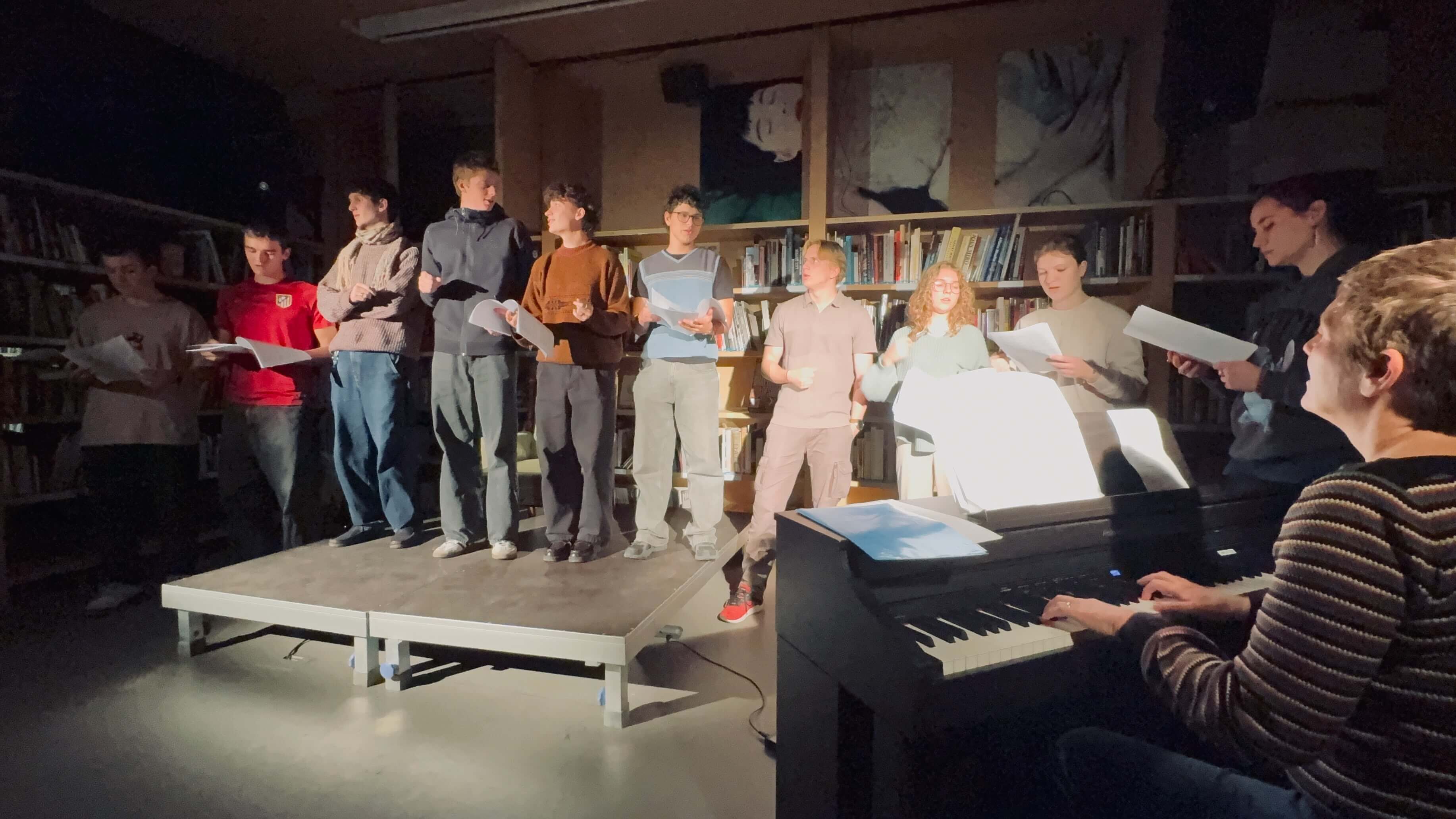 Am Montagabend, 3. November lasen Autor:innen des diesjährigen Schreibwettbewerbs sowie Vorleserinnen im gemütlichen Ambiente der Mediothek ihre Texte vor. Dieses Jahr war das Thema „Eiszeit“ Ausgangspunkt für allerlei Fantasievolles. Von inneren und äusseren Eiszeiten, von Prähistorischem und ganz Alltäglichem, von Märchen und Detektivgeschichten – das Publikum lauschte gespannt den wunderbaren und berührenden Geschichten. Erfrischende Gesangseinlagen gab es von Schüler:innen aus der 6a unter Leitung von Seraina Janett.