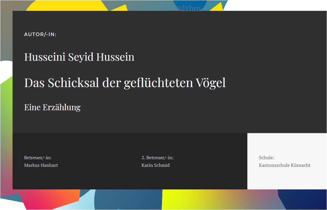 Aus unserer Schule sind die prämierten Arbeiten von David Messmer unter "Polarlicht" und von Hussein Husseini unter "Erzählung" zu finden.